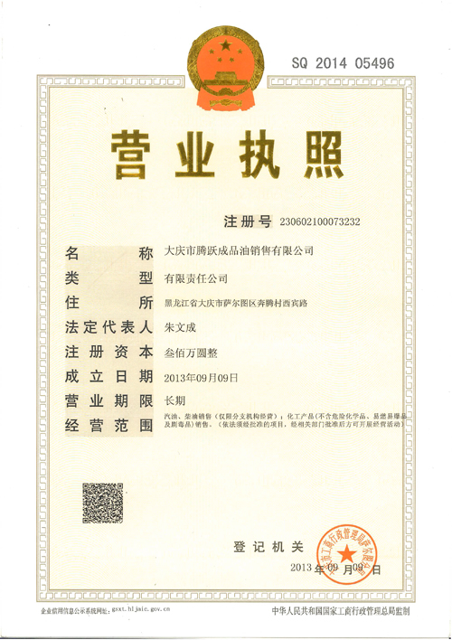 大慶市騰躍成品油銷售有限公司于2005年在大慶工商局登記注冊,注冊資本300萬元,主要依托大慶石化煉油基地的優(yōu)勢條件,面對全國市場開展成品油儲存、批發(fā)、銷售經(jīng)營業(yè)務(wù)。
