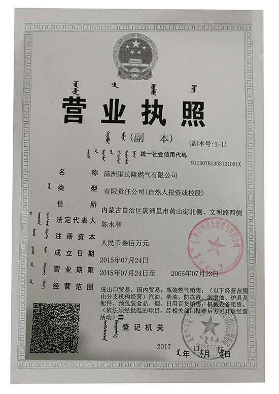 滿洲里長隆燃?xì)庥邢薰?,注冊資金300萬元人民幣。公司主要從事進(jìn)出口貿(mào)易,國內(nèi)貿(mào)易;瓶裝燃?xì)怃N售;汽油、柴油、防凍液、潤滑油、爐具及配件、預(yù)包裝食品、煙、日用百貨銷售、機(jī)械設(shè)備租賃等業(yè)務(wù)。公司擁有精良的制作團(tuán)隊,本著“誠信文化、**品質(zhì)”的理念,竭誠為您提供**質(zhì)的服務(wù)。